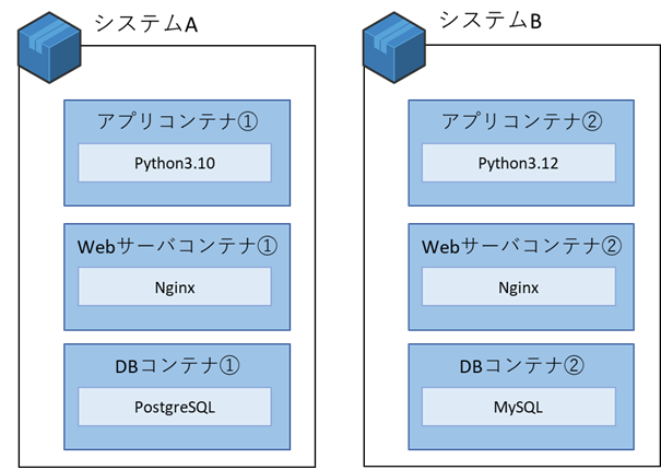 - コンテナBはPython3.12