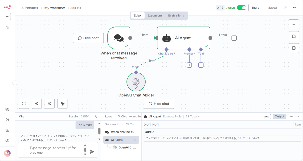 セミナー後に自分でも実際にn8nを入れてみて、触ってみました。