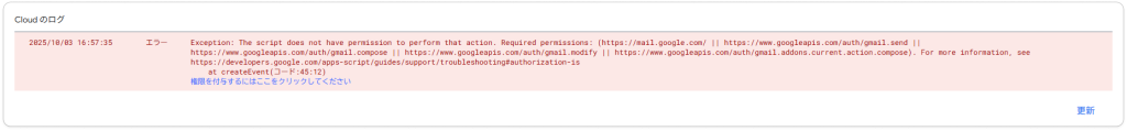 時間が経ってもカレンダーに反映されない場合、Google Apps Scriptのプログラムがエラーになっている可能性があります。エラーの内容はメールに通知されるか、トリガーの画面から確認することができるので、エラー内容を確認して対応します。